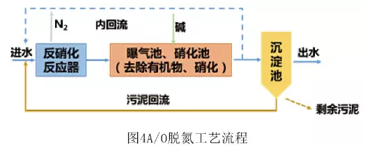 1973年,Barnard在原有工藝基礎上,將缺氧和好氧反應器完全分隔,污泥回流到缺氧反應器,并添加了內回流裝置,縮短了工藝流程,也就現在常說的缺氧好氧(A/O)工藝(如圖4)。